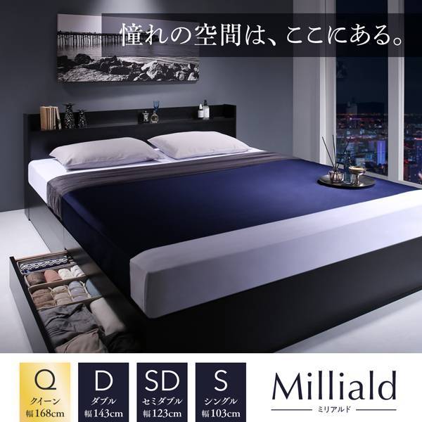 【サイズ】シングル:(約)幅103x長さ214x高さ70cmセミダブル:(約)幅123x長さ214x高さ70cmダブル:(約)幅143x長さ214x高さ70cmクイーン:(約)幅168x長さ214x高さ70cm床板までの高さ:(約)26cm引き出し有効内寸:(約)横92x奥行43x高さ10cm【材質】化粧繊維板【カラー】ブラック、ホワイト【機能】2口コンセント(1500W)【品質保証】1年間【生産国】ベトナム【梱包サイズ・重量】梱包数:3シングル:(約)107x42x11cm・10kg、104x47x11cm・7kg、100x50x12cm・10kgセミダブル:(約)128x43x11cm・15kg、104x47x11cm・7kg、122x50x12cm・12kgダブル:(約)148x43x14cm・20kg、104x47x11cm・7kg、142x50x12cm・14kgクイーン:(約)167x51.5x11.5cm・25kg、112x32x13cm・10kg、169x18x16cm・16kg※各サイズ・重量は概算です。
