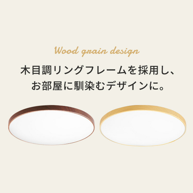 お部屋に馴染む木目調リングフレームを採用し、インテリアとしてあかりを楽しめる丸型シーリングライト。