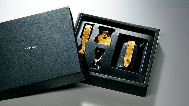 艶やかなオイル仕上げを施し、バッグなどへの取り付けに使える付属のナスカンとあわせて、LEXUSロゴ付きの化粧箱に収めました。