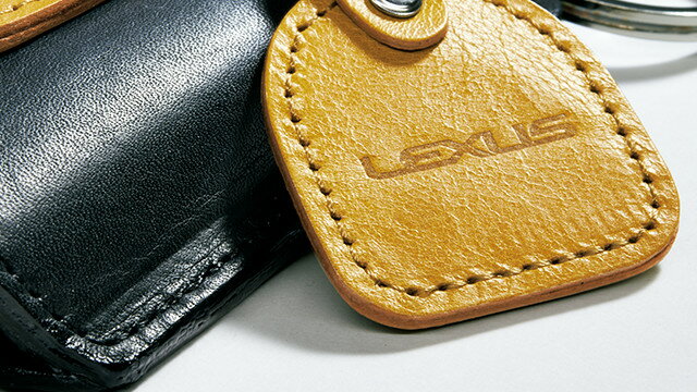 ストラップとLEXUSロゴを型押ししたタグには独特の質感が魅力の馬革を使用。