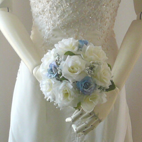 ウエディングブーケ/ブライダルブーケ ミニブーケ/トスブーケ ホワイトローズ&水色 ブーケ 【bouqet】