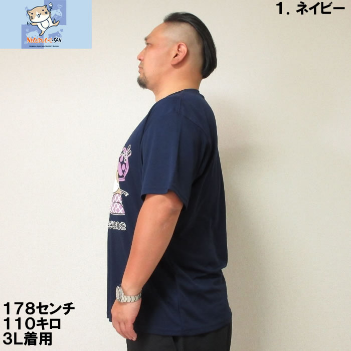 大きいサイズ メンズ NECOBUCHI-SAN-DRYハニカムメッシュ半袖Tシャツ(メーカー取寄)ネコブチサン 3L 4L 5L 6L ドライ Tシャツ