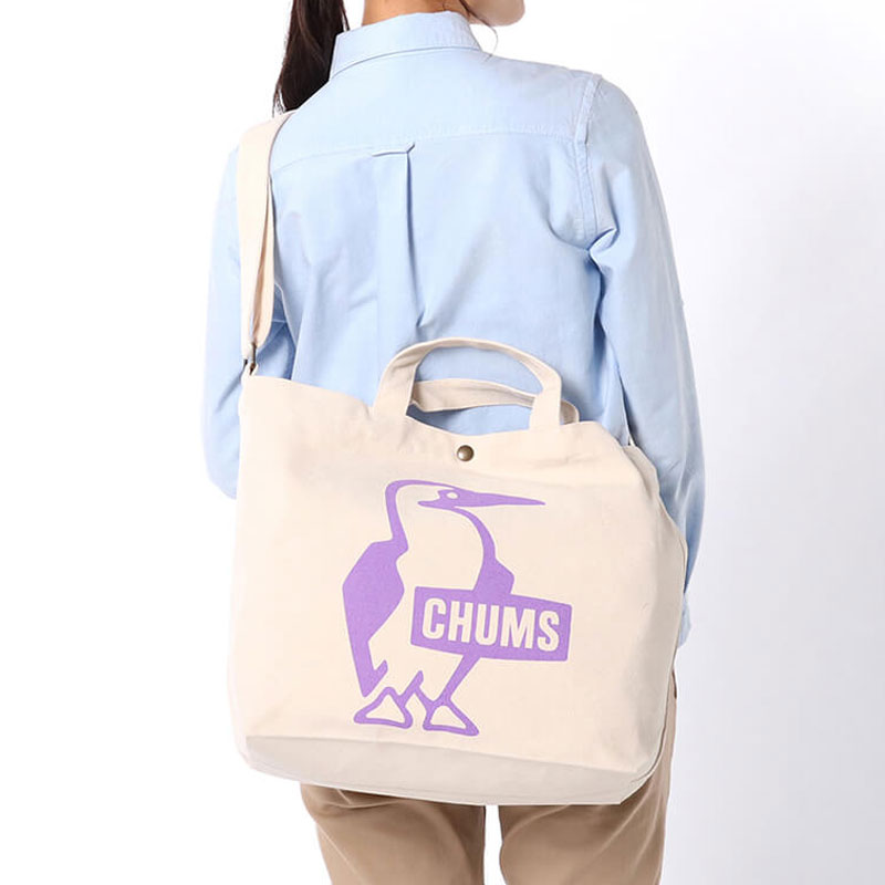 CHUMS ブービーバードロゴが可愛い、 2way仕様のキャンバスバッグ <素材特性> ナチュラルでやさしい風合いのキャンバス素材を採用。