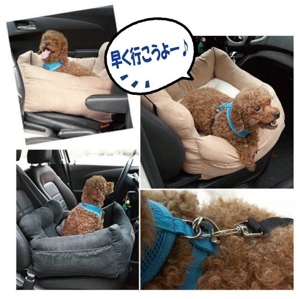 ドライブボックス 犬 小型犬 猫 ペット用品 ペットクッション 2点セット 安全 お出かけ 旅行 アウトドア 散歩 おさんぽ ベッド ソファー ベルト ゴムバンド 席 固定 コンソールボックス 飛び出し防止 リード ペットキャリー
