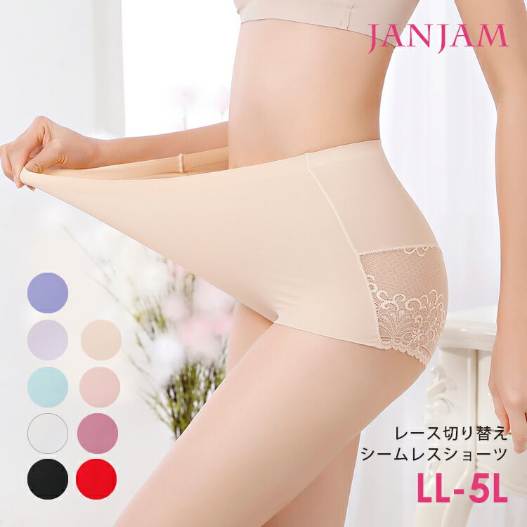 メール便対応 大きいサイズ レディース ボックスショーツ 下着 シームレス レース切替 カラバリ豊富 インナー LL/3L/4L/5L ゆったりサイズ ぽっちゃり女子 プラスサイズ