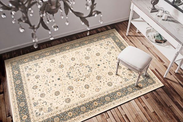 優しい印象のメダリオンデザインを柔らかな色使いのウール素材でエレガントに織り上げました。