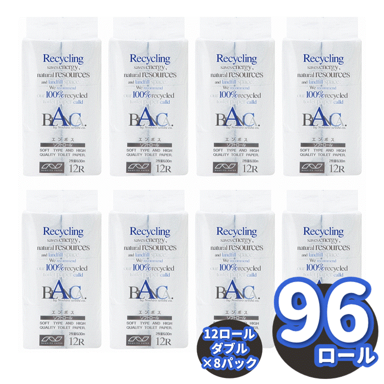 9,000円 【ふるさと納税】再生紙100%トイレットペーパー 各種 トイレットペーパー 「ブランカ」 12R ダブル(30m×2枚)×8パック 96個 もしもの時の備えにも安心のダブルタイプです。