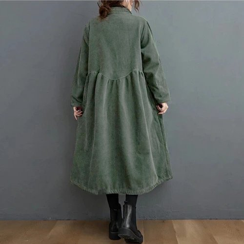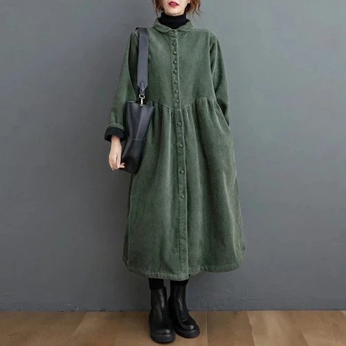 ルーズシルエット 長袖 コーデュロイ シャツ ワンピース《ブラック/グリーン/ベージュ》