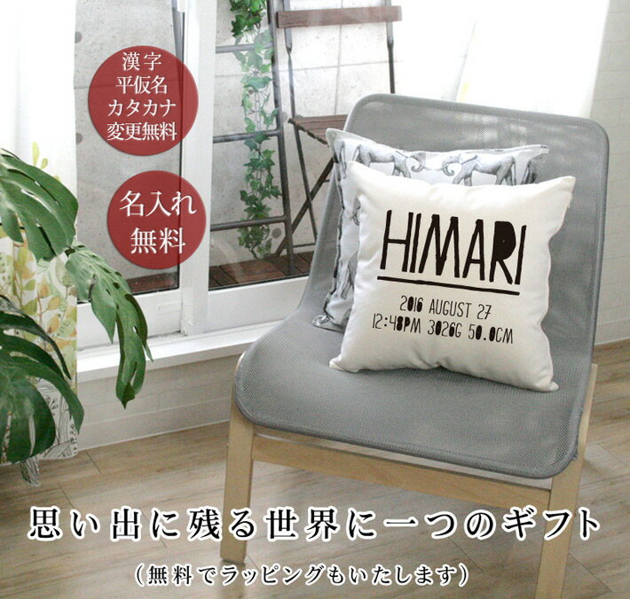 ■ Item Specサイズ縦45cm×横45cm素材(クッションカバー)コットン100%・(中わた)帝人クリスターおもな用途出産祝い 出産内祝い 1歳の誕生日プレゼント 3か月・6か月祝い ハーフバースデー 百日祝い 100日祝い熨斗(のし)対応致します出産祝い 出産内祝い など、熨斗をご希望の場合は備考欄へご記入くださいお支払・配送についてのご注意■ご注意 こちらの商品はメーカー直送となりますので「代金引換」はご利用いただけません。