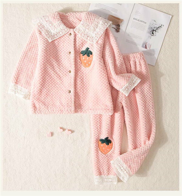 もこもこ ルームウェア キッズパジャマ 子供パジャマ 女の子 寝巻き 冬 かわいい おしゃれ 長袖 フルーツ柄 前開き ふわふわ 裏起毛 可愛い 韓国 上下セット 部屋着 誕生日 プレゼント 暖かい ピンク 110 120 130 140 150 160