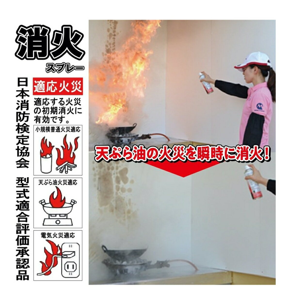 初期消火に最適! キッチン消火スプレーもしもの時に素早くスプレーするだけ! 火消しスプレー(エアゾール式簡易消化器)