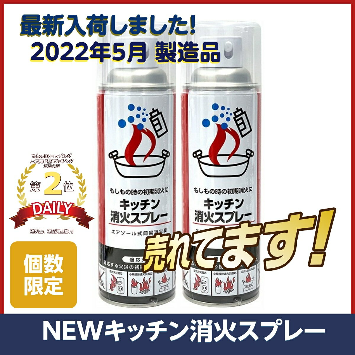 初期消火に最適! キッチン消火スプレーもしもの時に素早くスプレーするだけ!火消しスプレー(エアゾール式簡易消化器)お得な2本セット