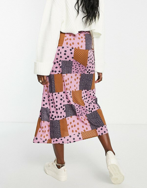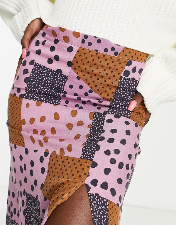 エイソス ASOS asos ASOS DESIGNミディスリップスカート、パッチワークスポットプリントで太ももを分割 スカート レディース 女性 インポートブランド 小さいサイズから大きいサイズまで