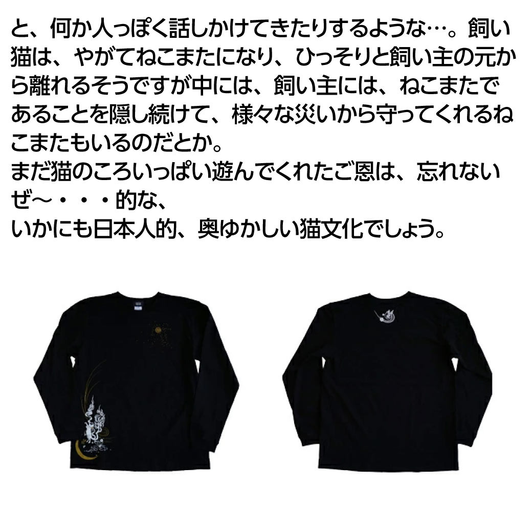 シリーズ:和柄シリーズ デザイン:和柄・猫・ネコ・ねこ・金魚 タイプ:ユニセックス サイズ:XS~XL プリント:シルクプリント ブランド:nesnoo ネスノ 素材:綿100%(ヘザーグレー:綿90%、ポリエステル10%)サイズ XS/S/M/L/XL 素材 綿100%(ヘザーグレー:綿90%、ポリエステル10%) 洗濯表示 生産国 中国 印刷 日本 生地について 5.6ozのロングスリーブTシャツ(1.6インチリブ) 適度な弾力のリブが着こなしのエッセンスに。