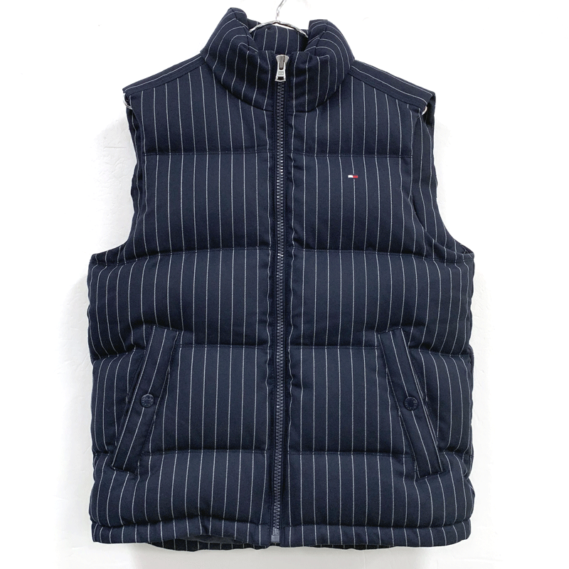 【中古】TOMMY HILFIGER トミー ヒルフィガー ストライプ ダウンベスト/定番【メンズ古着】【山城店】