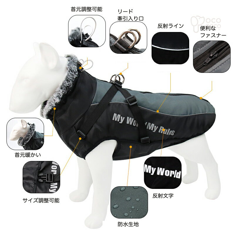 犬服 ドッグウェア ジャケット ハーネス一体型ジャンパー ハーネス 大型犬 中型犬 犬の服 防寒着 冬 コート ベスト オシャレ 重ね着 厚手 大人気 防寒対策