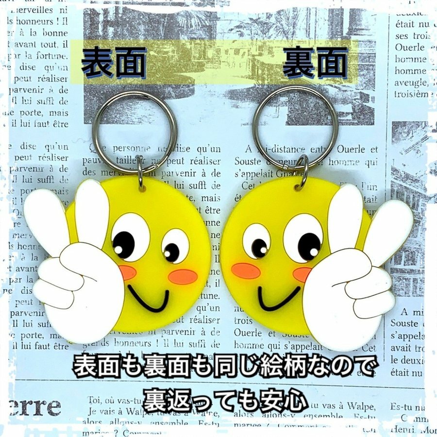 ラバースマイルキーホルダー スマイル ラバー 柔らかい リバーシブル カワイイ ピース メガネ キーホルダー お揃い プレゼント やわらかいラバーのスマイルキーホルダー つけてると元気になりそなスマイルキーホルダーラバーだからやわらかくて手触りいいよ。